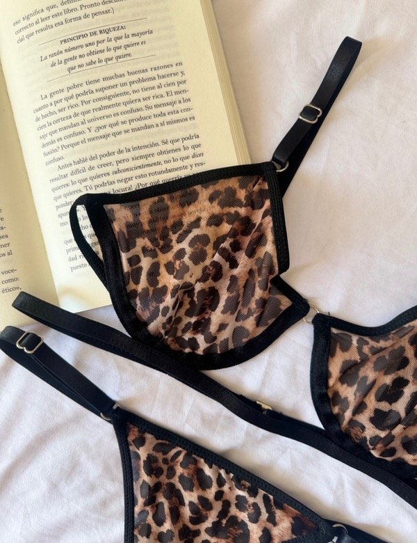 Conjunto de diseño sin armado, de microtul y con aro. El corpiño viene por talle del 1 al 4 que representa del 85 al 100, la less es regulable y talle único.