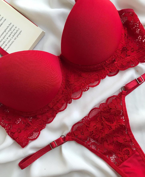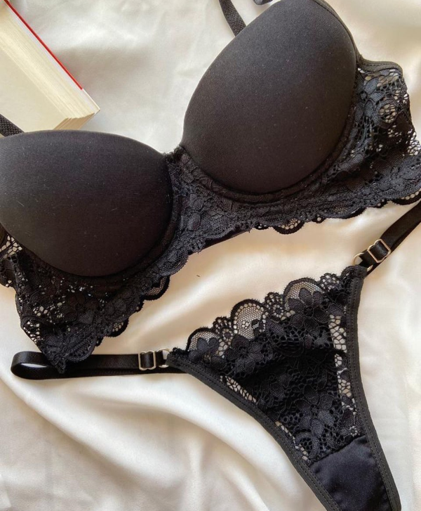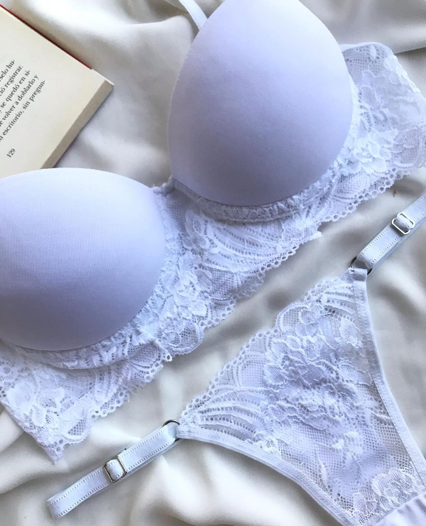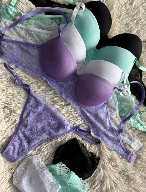 Conjunto taza soft push con aro de lycra y detalles de encaje con less regulable. El corpiño viene por talle del 85 al 100, la less es regulable y talle único.