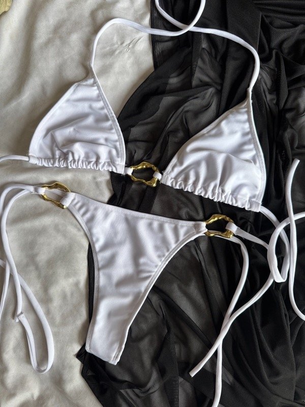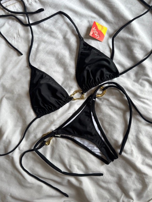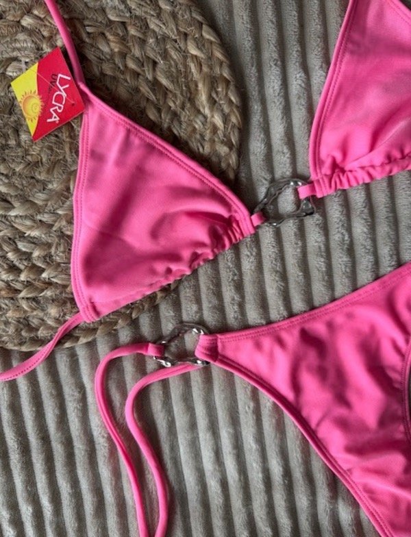 Bikini premium de lycra con protección UV+50 y accesorio resistente al cloro y al sol. Corpiño triangulito y less para atar. No incluye almohadilla push up. Vienen forradas por dentro y talles del 1 al 4 que representa del 85 al 100 ♥