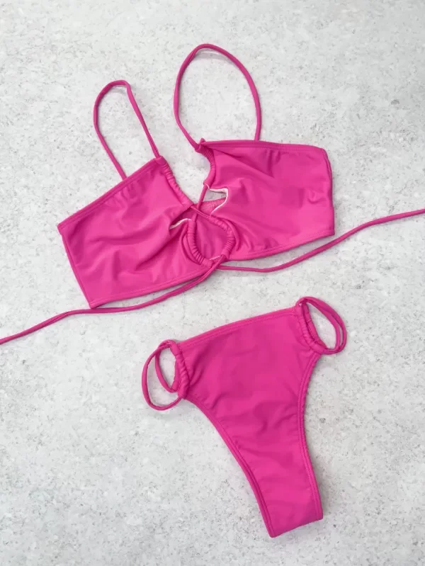 Bikini: Top tipo straples con tira cruzada para atar y colaless con tira cruzada. Vienen forradas por dentro y por talle del 1 al 4 que representa del 85 al 100♥