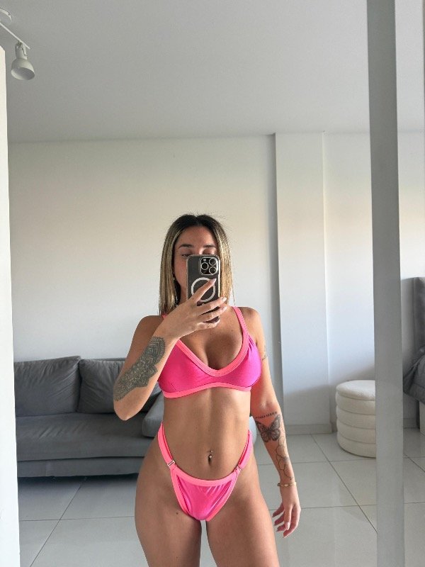 Bikini premium de lycra tricot: Corpiño tipo topcito con breteles regulables y broche en la espalda con less regulable.