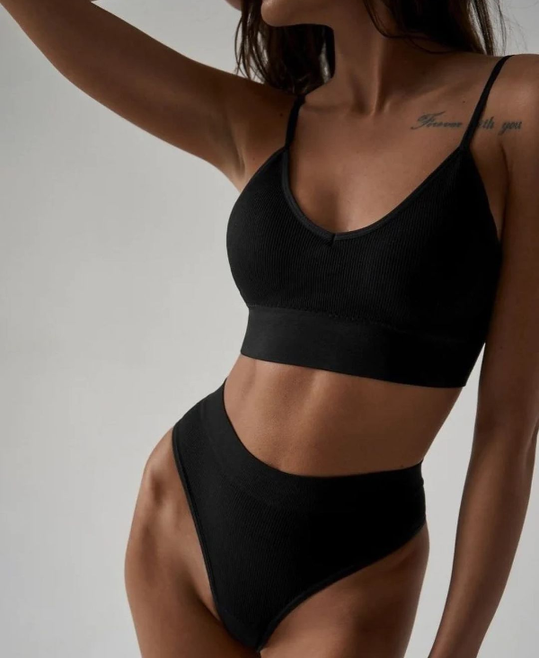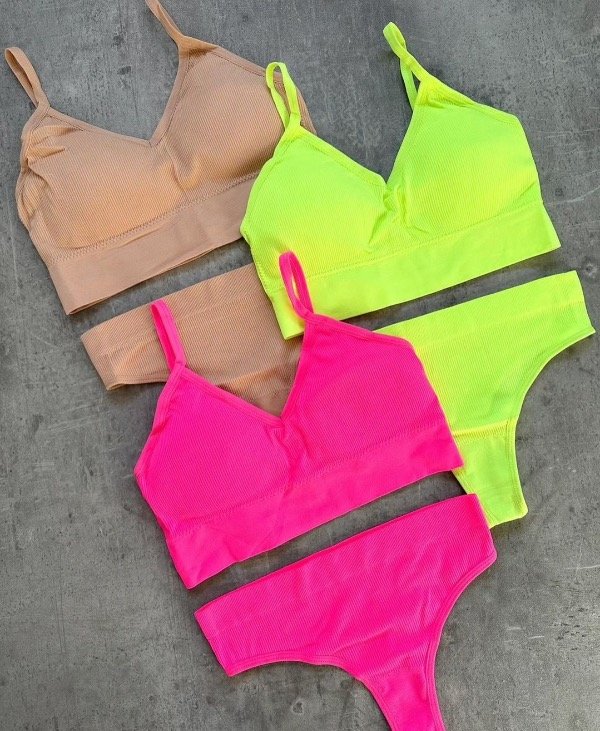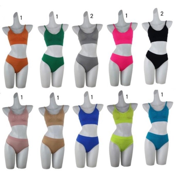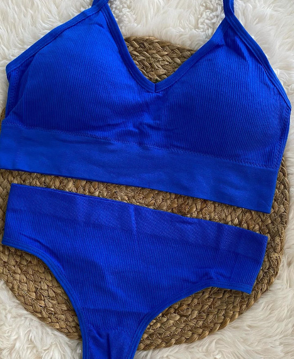 Conjunto texturado tipo morley con rellenito desmontable y less tiro alto. Es talle único y abarca del 85 al 105, calidad PREMIUM y trae spandex por lo que ceden muchisimo.