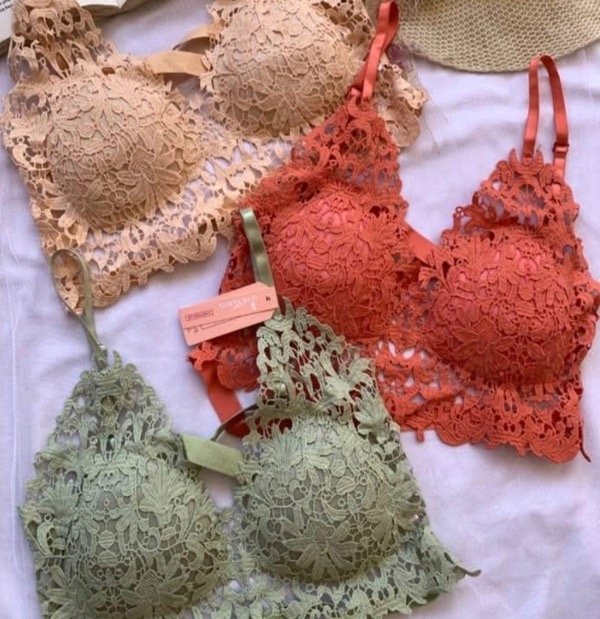 Top de puntilla con relleno soft fijo y breteles regulables. Es de calidad PREMIUM y viene en dos talles: M/L (equivale a un 85-90) y XL/XXL (equivale a un 90-95).