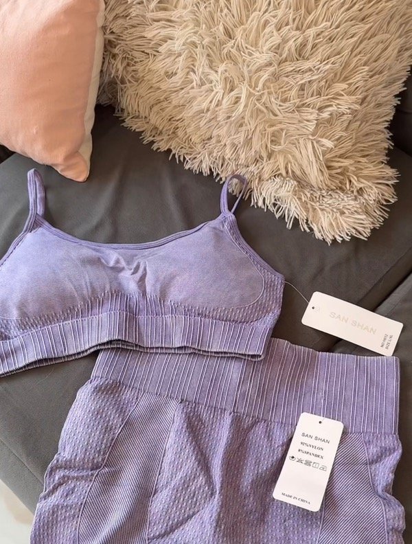 Set de calidad premium. Top deportivo y calza corta levanta cola (con frunce). Viene en dos talles: S/M y L/XL